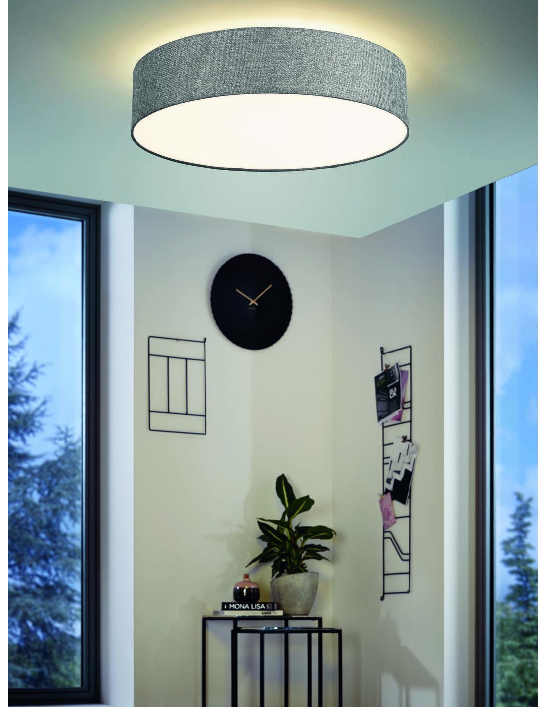 The EGLO 98668 is a lamp from the ROMAO-C Collection with the following technical characteristics: 33W 220-240V,50/60Hz 2700-6500K. It is characterized by the use of steel materials as the main part and linen textile, acrylic for the lampshade. Combines colors such as white in the lamp and gray, white for the screenIncludes functions such as Bluetooth, Remote control, Control via APP, CCT, RGB. Requires 1 LED socket bulb (included). The manufacturer of this collection is EGLO, prestigious marca that stands out for the quality of its designs and for being a world leader in lighting.