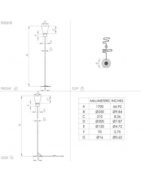 Gold floor lamp with white shade on the outside, ideal for modern, eclectic decorations or simply for areas where you want to add a touch of light and decorate at the same time. It is operated with a foot switch and uses an E27 socket bulb, not included.