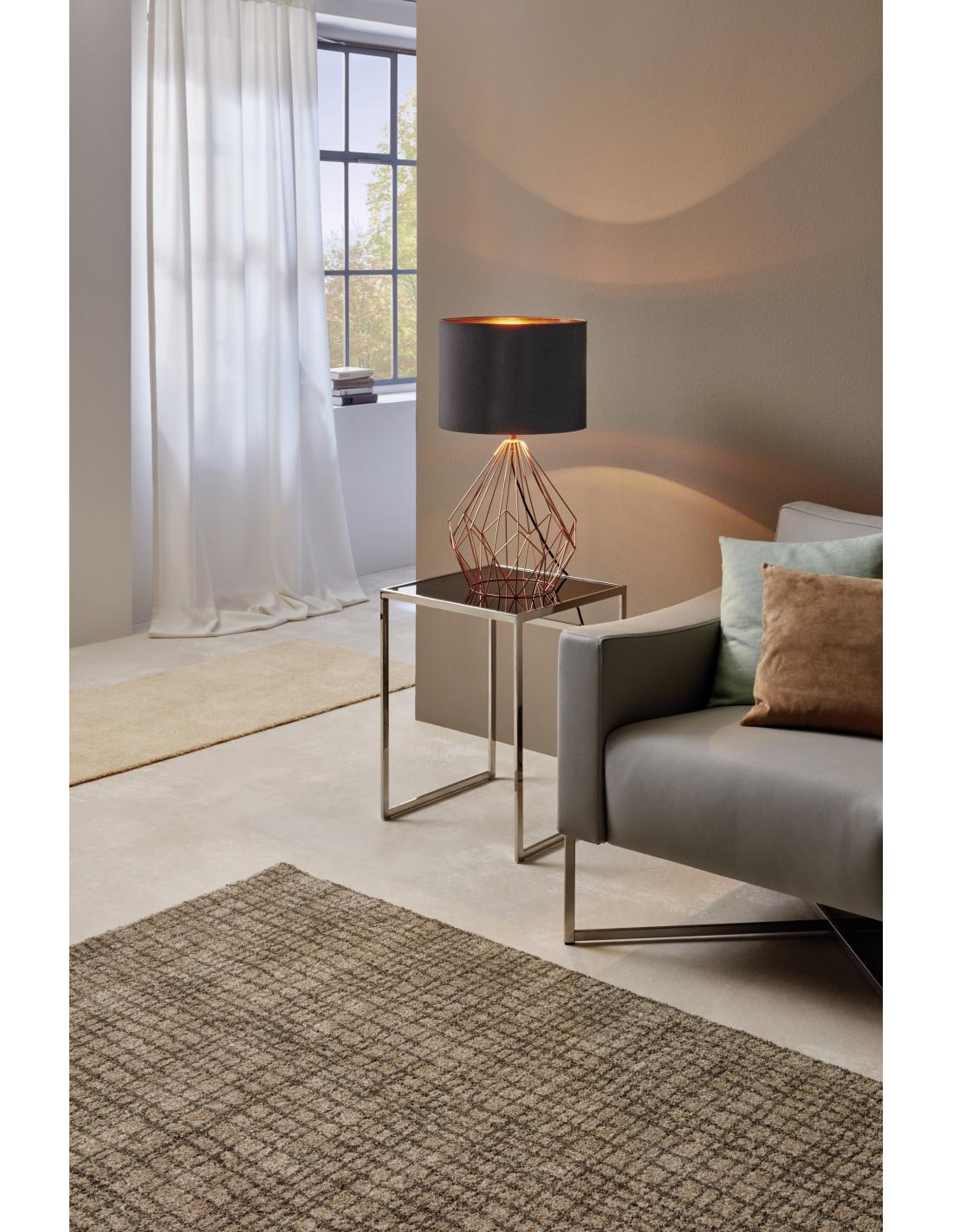 60W 220-240V,50/60Hz. It is characterized by the use of steel materials as the main part and textile for the screen. Combine colors such as Copper in the lamp and black, copper for the lampshade. Requires 1