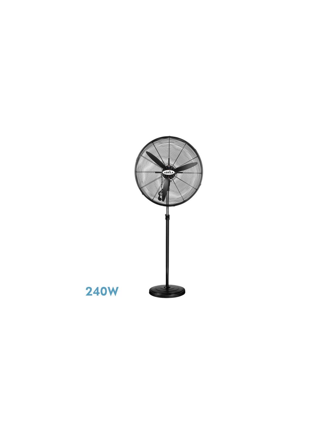 Industrial floorFan from the TORMENTA series made of metal and polycarbonate, in BLACK color with three blades and three speeds. AC motor. Two positions, fixed and rotary, also oscillating, allowing the air to be redirected to the desired area. It has a power of 240 watts. It has an adjustable height measurement of 155<,180x71x71 centimeters. Available in this series with powers of 240w and 280w with their corresponding measurements.