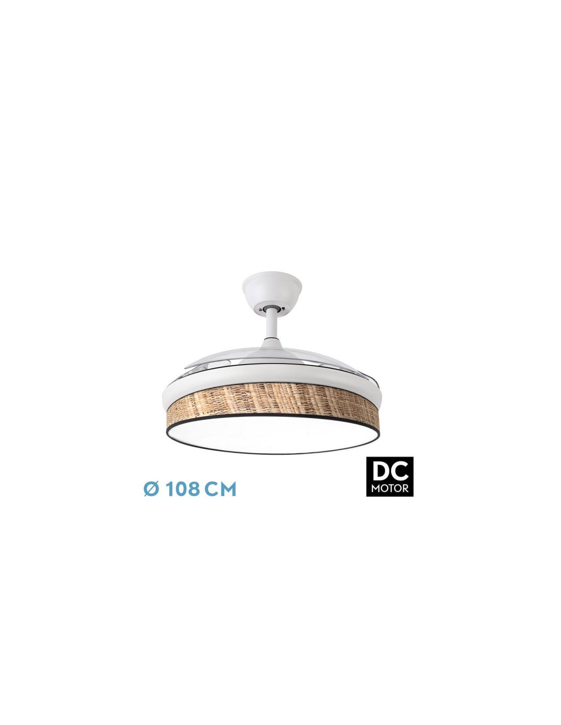 Exclusive and original DC fan from the MODA series with three FOLDABLE ABS blades, in WHITE color with DARK REED diffuser. Made of metal, ABS, textile and polycarbonate. Modern and versatile style , the designs and colors of its diffusers make this fan both in operation and in lamp mode, become the center of attention of the brightening room. Ideal for both modern and classic environments, very much in line with new decoration styles combining colors and textures. DC motor with six adjustable speeds. Integrated LED technology with a power of 72W, 7200 lumens and with 3 SELECTABLE LIGHT TEMPERATURES (3000-4000-6000K). Summer or winter air control. Its measurement is 39/54X49X49 centimeters with the blades folded and 39/54X108X108 centimeters with the blades unfolded, with two seatpost measurements to install it at different heights. Remote control INCLUDED with built-in COLOR MEMORY and 1/2/4 hour TIMER. Model available in both black and white and with a wide variety of designs and colors in its diffusers.<br/><br/></div>