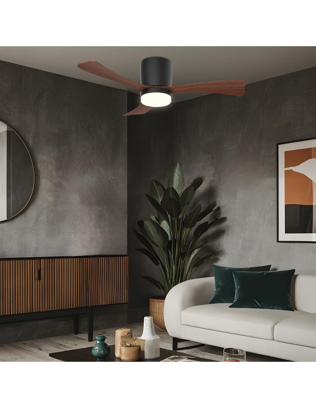 KENT BLACK WOOD FAN 107CM 3 LED BLADES 18W