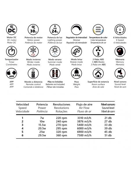TAURO WHITE FAN 76CMS 3 LED BLADES 24W