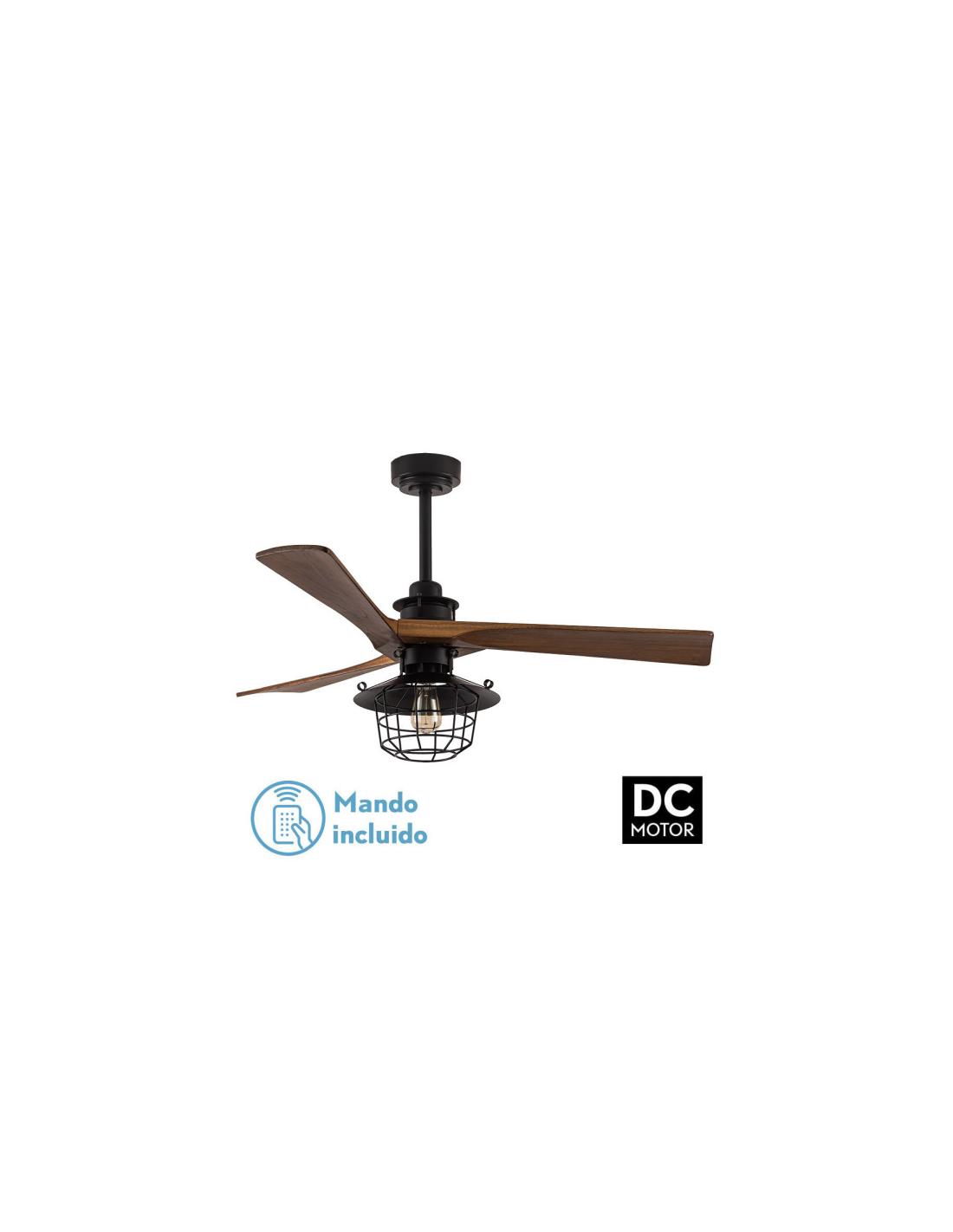 Fan Dc Vulturno Black 1xe27 3 Blades Oak 6 Speeds With Remote And Timer 53/65.5x132x132 Cm