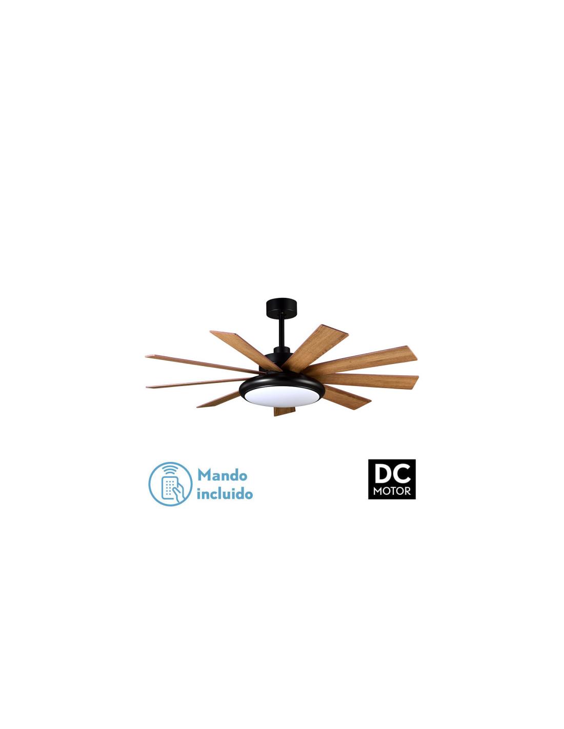 Fan DC Piraeus 36w Black 9 Blades Oak/Beech 6 Speed 3 Colors 3800lm 132d C/Remote, Memory And Timer
