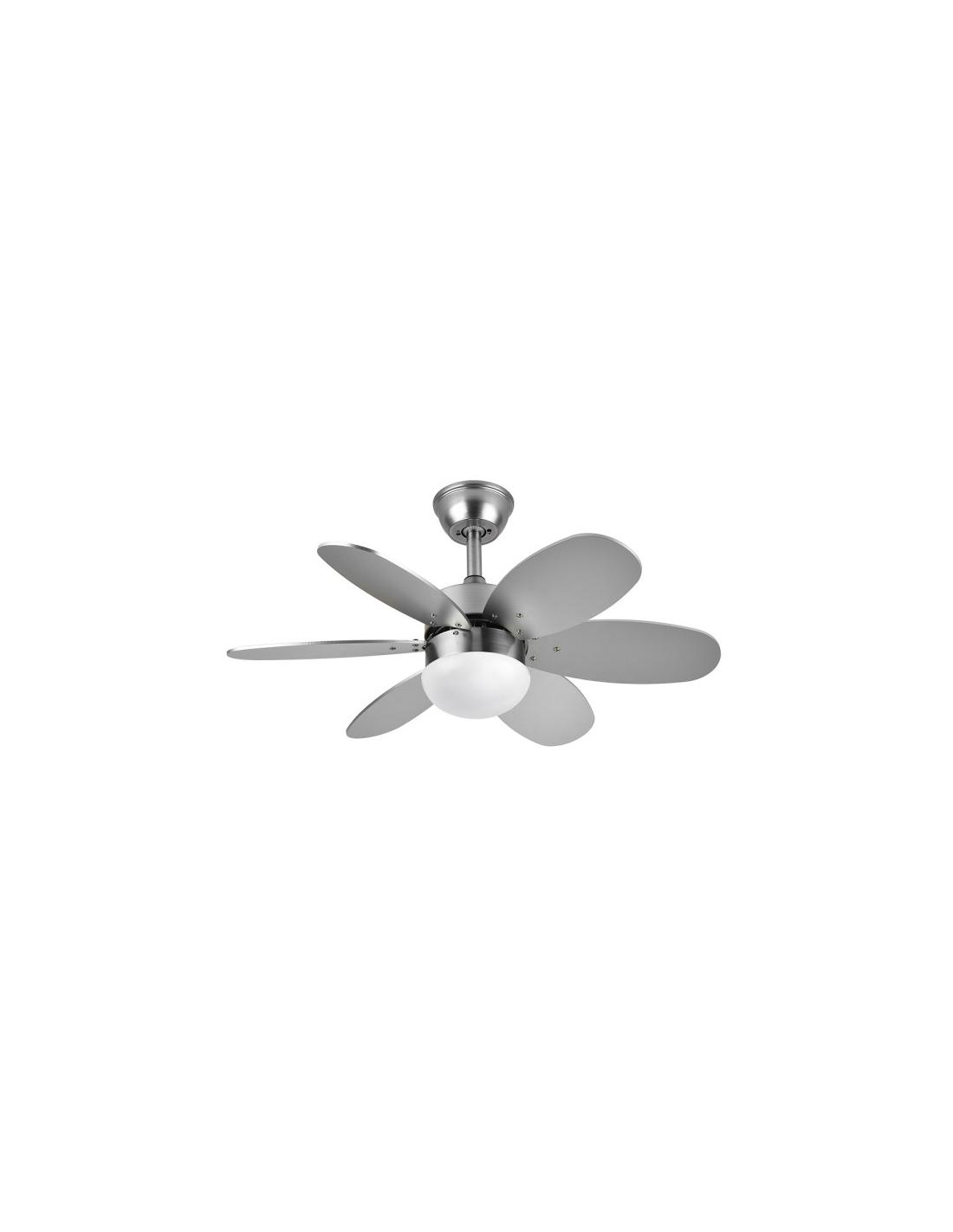 Fan Dc Alves 2xe27 Nickel 6 Blades Rev. Beech/silver 41x85d C/ Remote And Timer