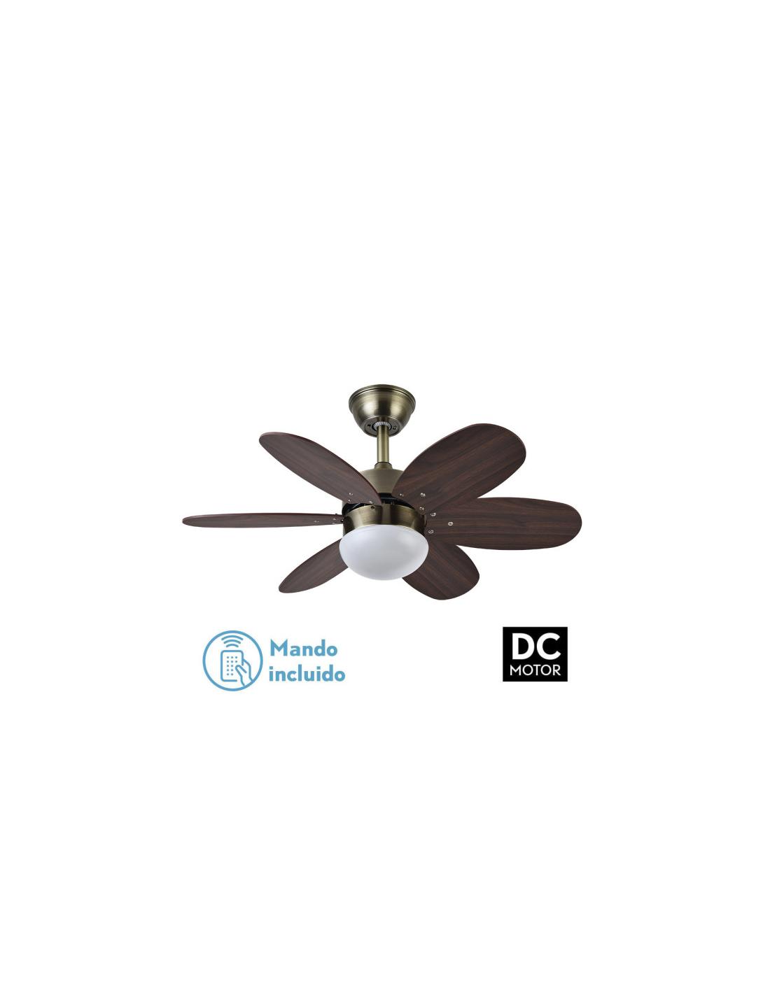 Fan Dc Alves 2xe27 Leather 6 Blades Rev. Cherry/walnut 41x85d w/ remote and timer
