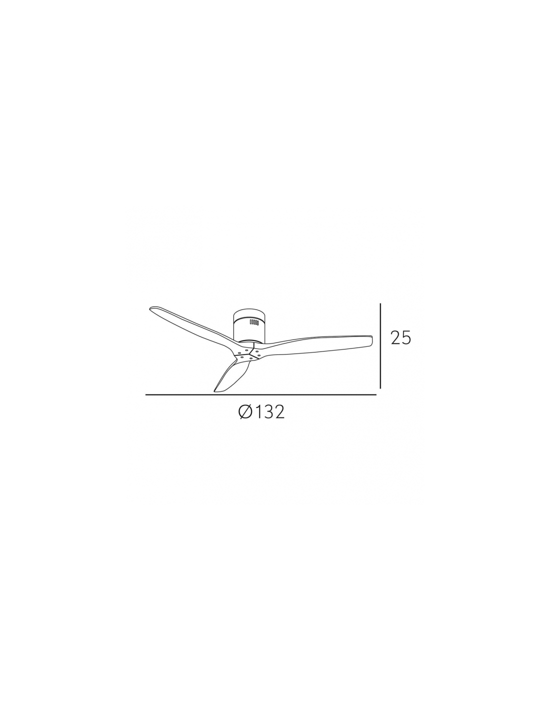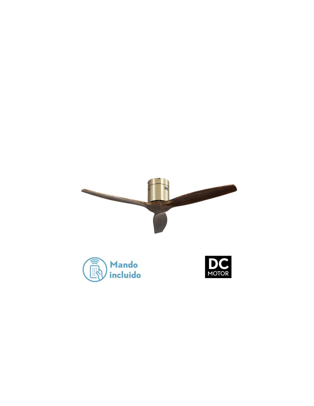 Fan GABLE without built-in light, made of metal and wood, in LEATHER color with three OAK color blades. DC motor. It has five adjustable speeds. Its measurement is 25X132X132 centimeters. Summer or winter air control. Remote control INCLUDED with TIMER 1/4/8 H. Model also available in Nickel-Haya, Brown-Oak and White.
