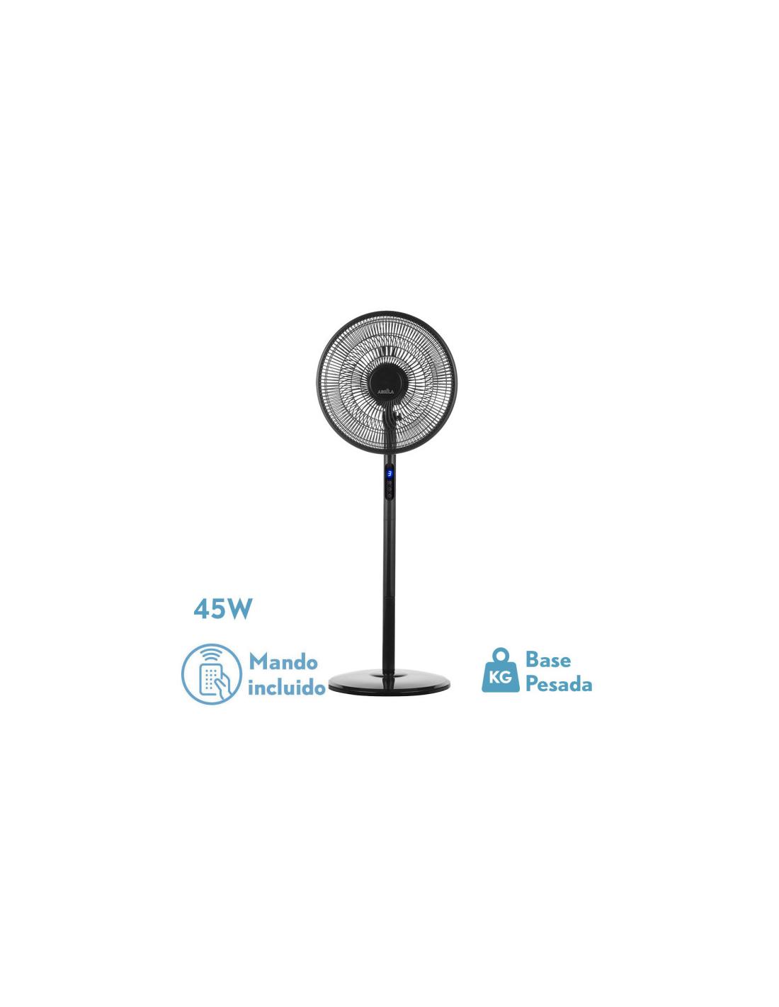 Standing Fan from the ICONO series in BLACK color with five blades and three speeds. Made of metal and polycarbonate. Modern design, 45 watts of power, TOUCH, with REMOTE CONTROL included and TIMER, being able to program it to turn off automatically from 1 to 8 hours, providing great energy savings. With two fixed and rotary positions, being able to quickly diffuse the air throughout the room. It measures 119x44x40 centimeters. Model available in black and white.