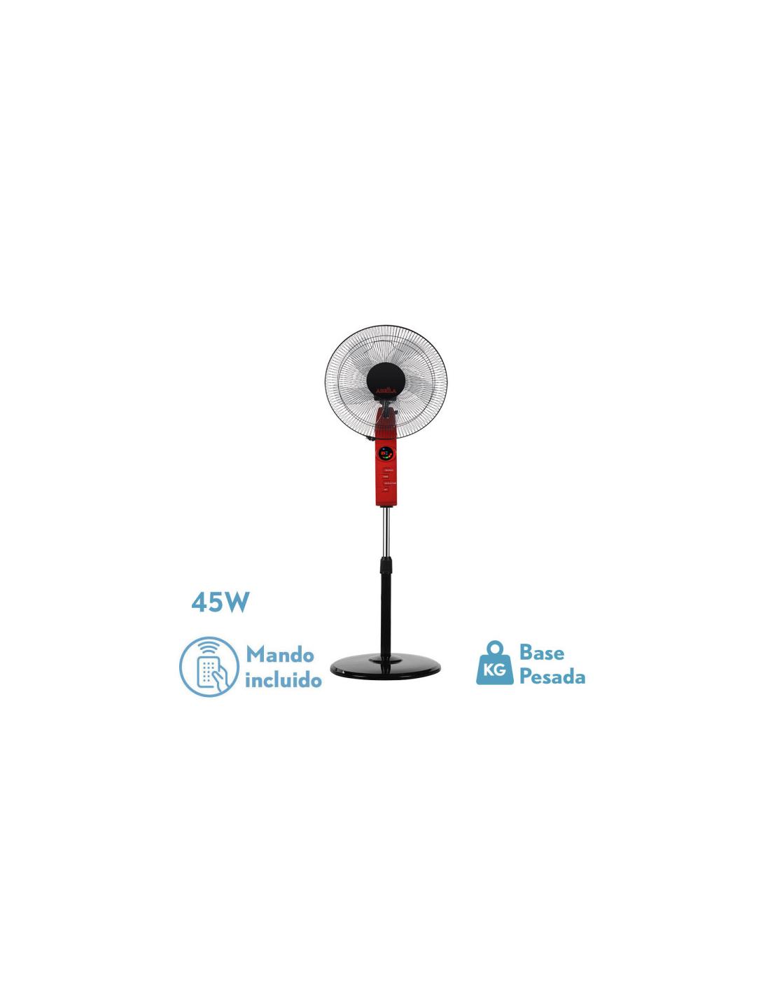 CIRCUS series Floor Fan in RED/BLACK color with five blades and three speeds. Made of metal and polycarbonate. Very modern and original design combining colors very much in line with current decorations. It has 45 watts of power, with digital screen, REMOTE CONTROL included and TIMER, being able to program it to turn off automatically from 1 to 8 hours, providing great energy savings. With two fixed and rotary positions, being able to quickly diffuse the air throughout the room. It has a height-adjustable size of 113<,136x43x40 centimeters. Model available in beige/black and red/black.