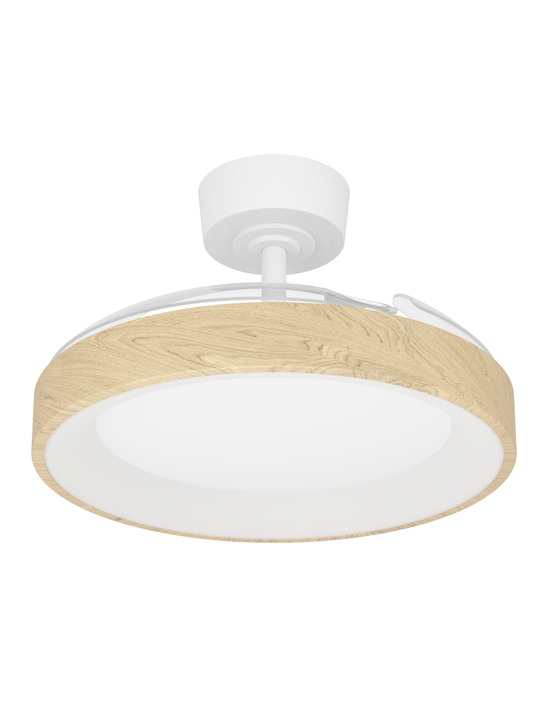 The TORREYA ceiling fan in white/oak impresses with variable dimensions of Ø 470/980 mm and a height of 310 mm. With a 27-watt DC motor, an airflow of 7300 m³/h as well as an LED power of 24 watts, 3600 lumens and Tunable White, it combines powerful air circulation with flexibly adjustable lighting.