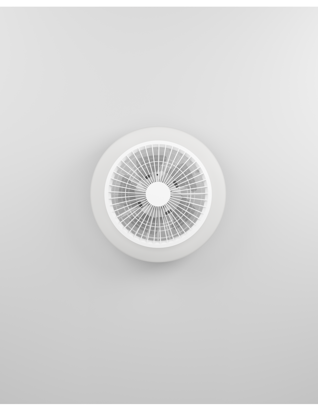 The SALVADOR 35201 white roof fan in size S combines a compact construction height of 140 mm with a diameter of 460 mm. With a DC output of 18 watts, an air flow rate of 2000 m³/h, as well as 18 watts LED and 2700 lumens with Tunable White, it provides pleasant air circulation and flexibly adjustable light.
