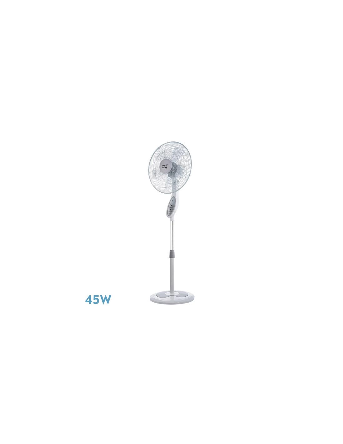 Floor Fan from the FLOXO series in WHITE/GRAY color with five blades and three speeds. Made of metal and polycarbonate. AC motor. It has a power of 45 watts. Two positions, fixed and rotating, also oscillating, being able to redirect the air to the desired area. It has dimensions , with adjustable height, of 113<,136x44.5x40 centimeters. Remote control INCLUDED and TIMER up to 7.5 hours.