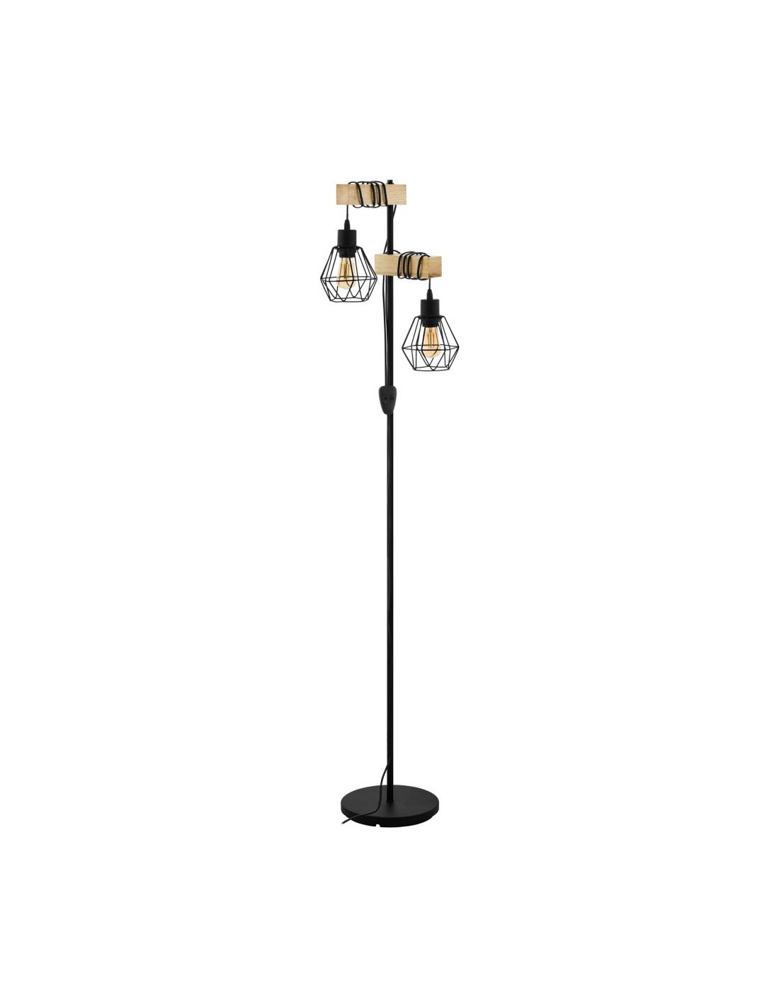 TOWNSHEND 5 is a living room floor lamp with two light points. Each point of light falls from a wooden beam with a diamond-style shade in steel. A very successful and very versatile industrial style floor lamp. It uses two E27 bulbs, not included.