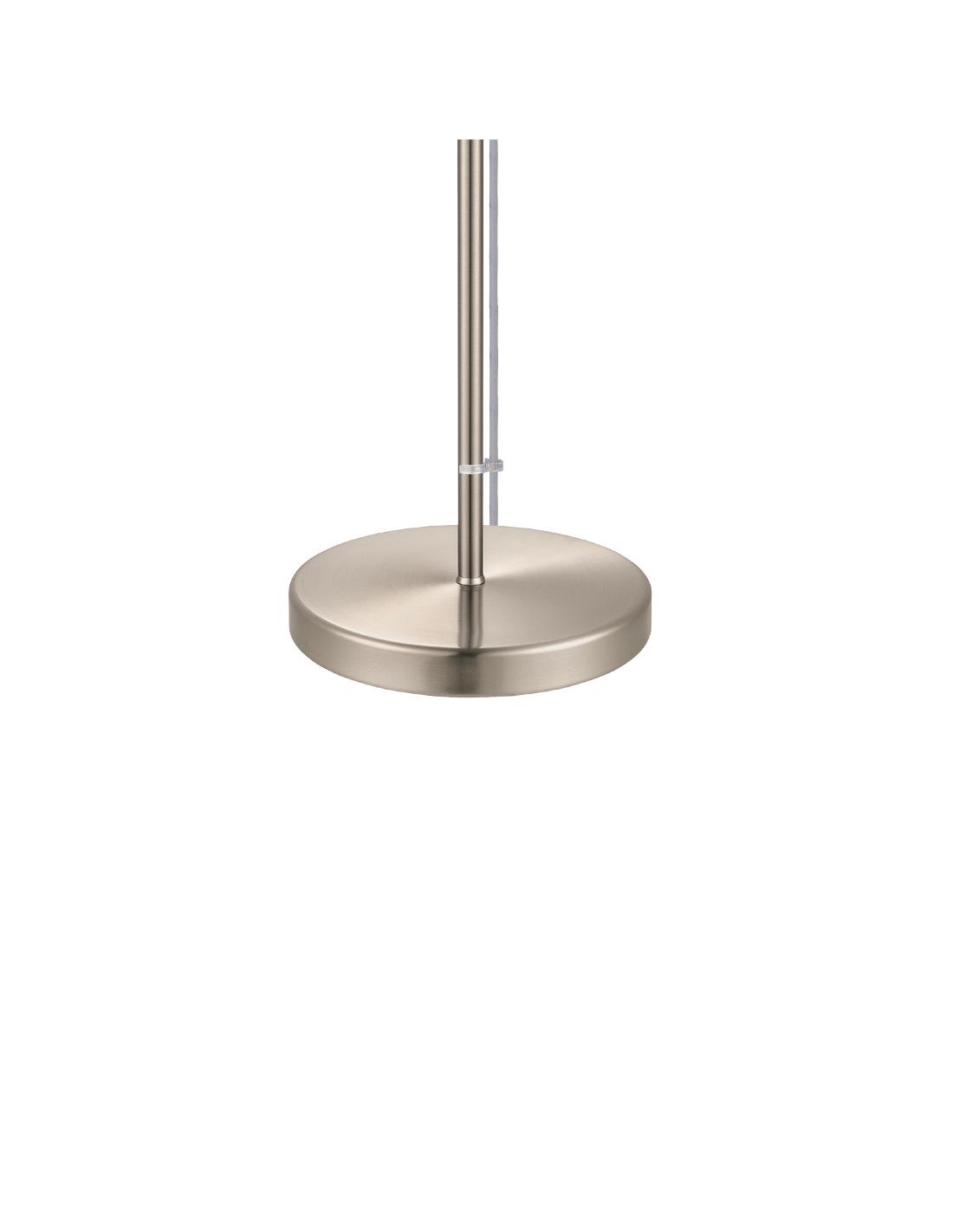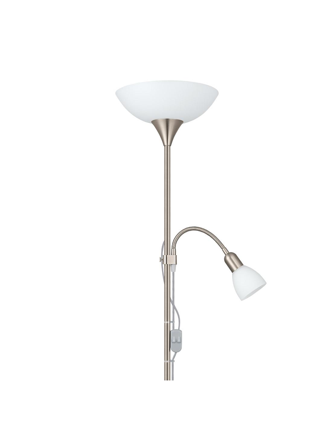 UP 2 is a floor lamp with articulated arm in matte nickel color. The upper shade is made of acrylic and uses an E27 bulb. The shade of the flexible arm is made of glass and uses an E14 bulb. Bulbs not included.