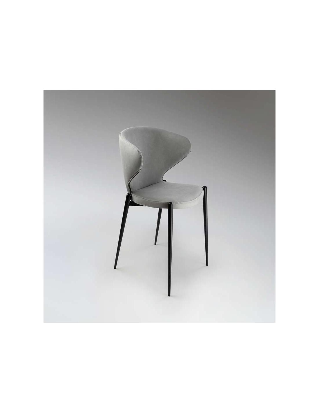 Chair made of metal, matte black finish. Seat and back made of plywood and foam. 100% polyester textile upholstery in light gray color. Dry cleaning.