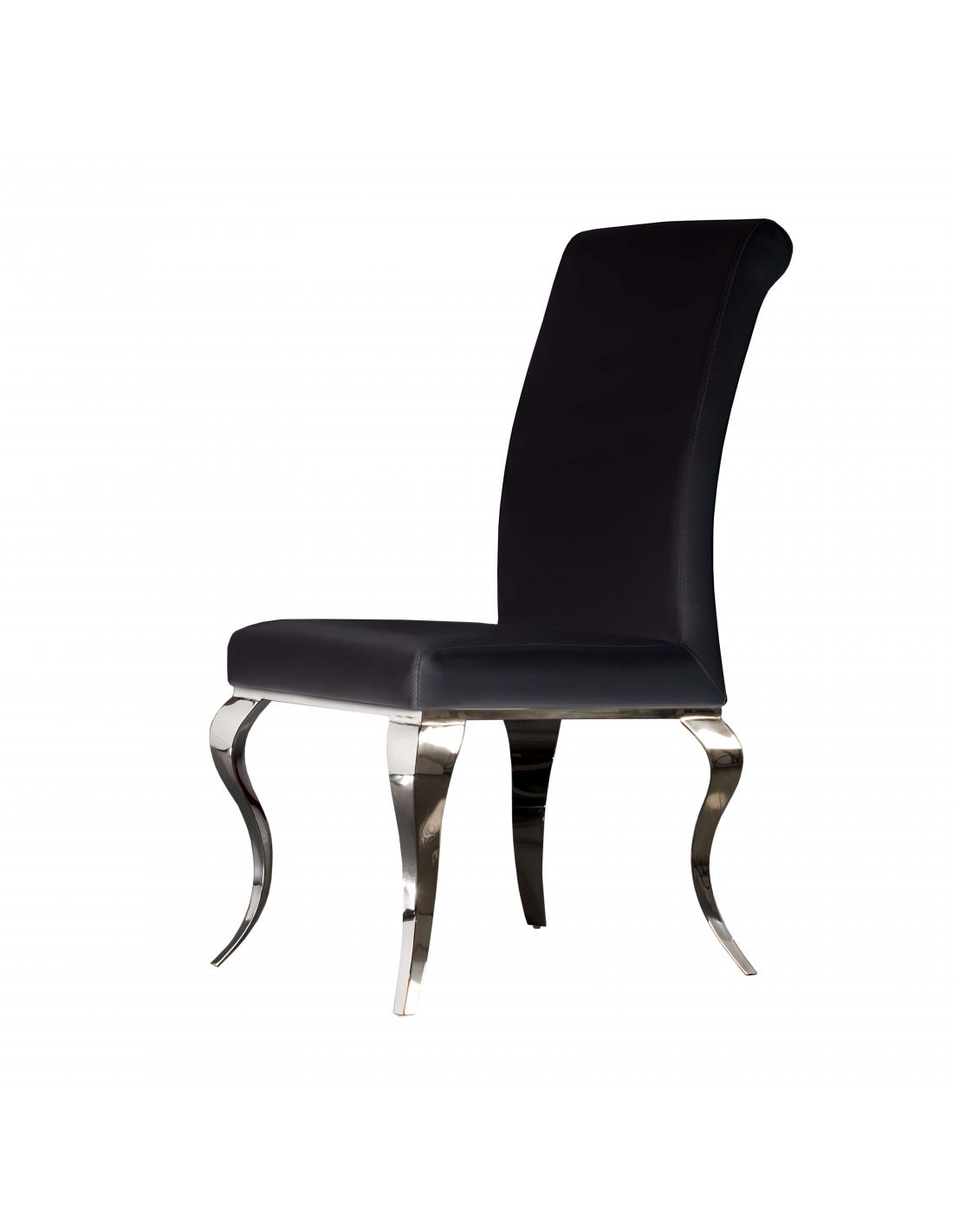 Chair made of stainless steel. Upholstered in black PVC 30% faux leather, DOP 30%, other fibers 40%. Dry cleaning.
