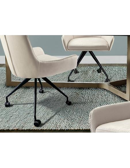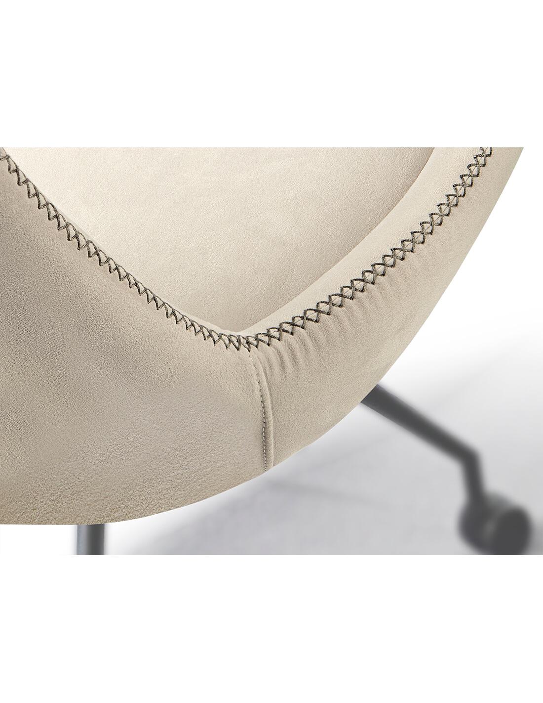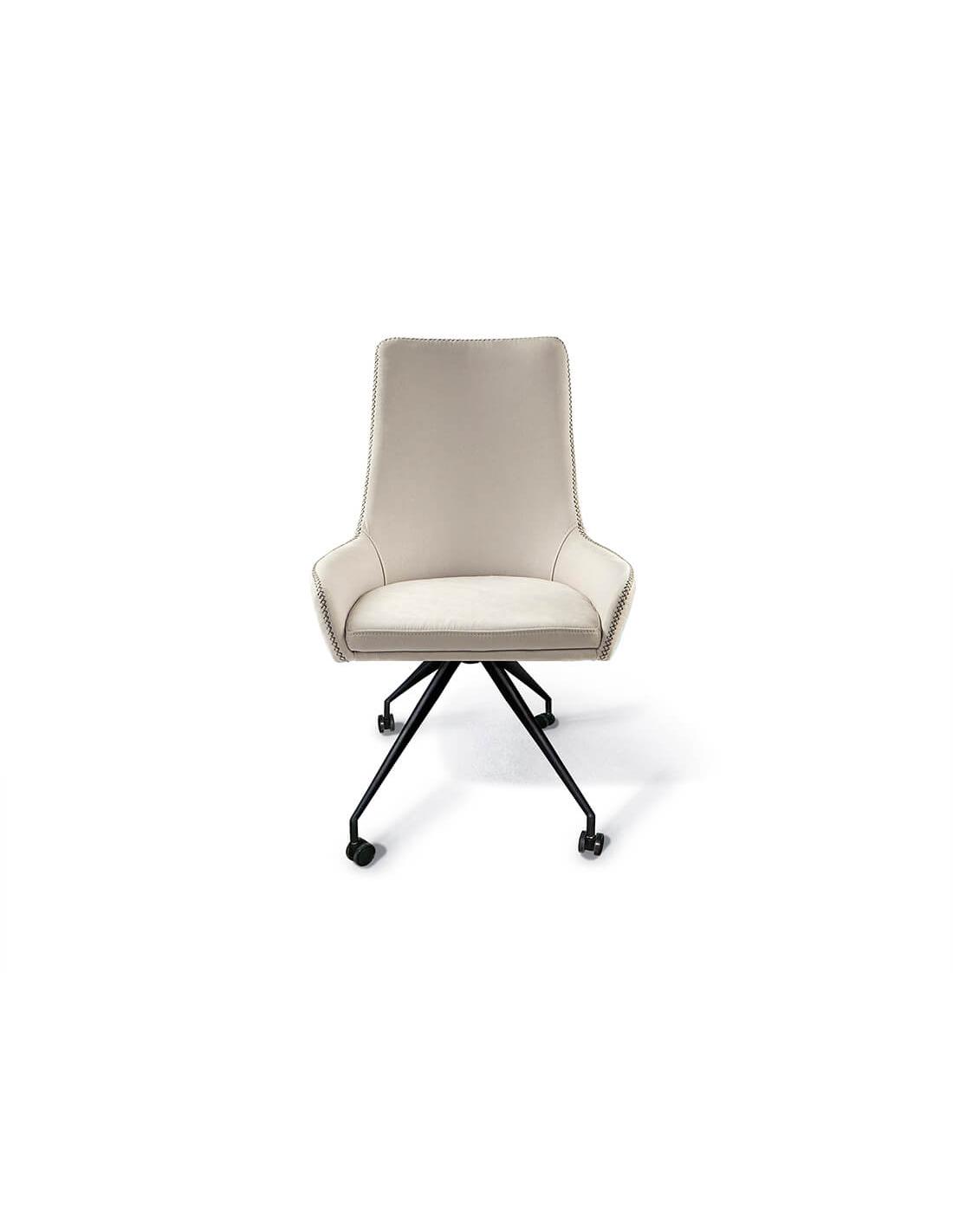 Chair with swivel wheels, made of metal, matte black finish. 100% polyester textile upholstery in white color, with decorative gray stitching.