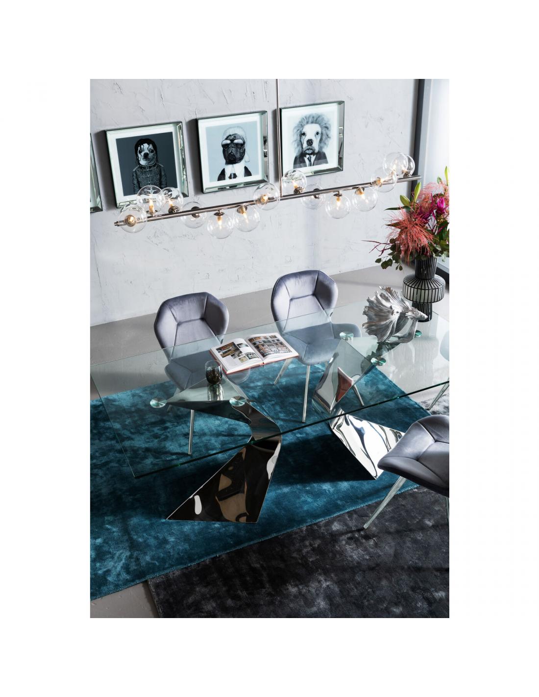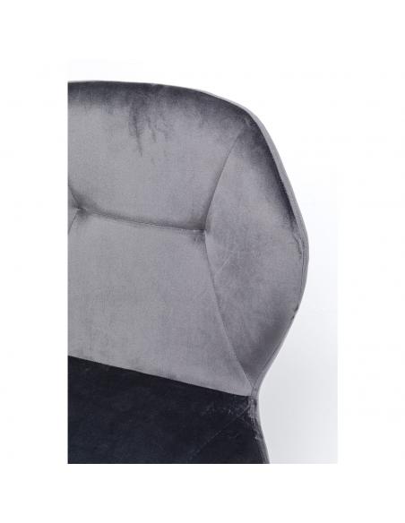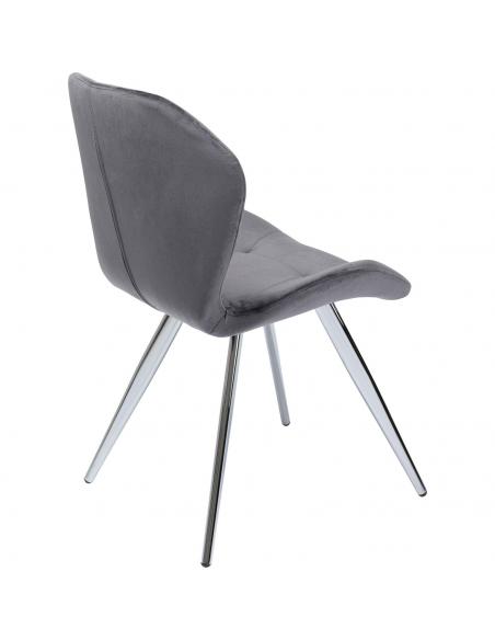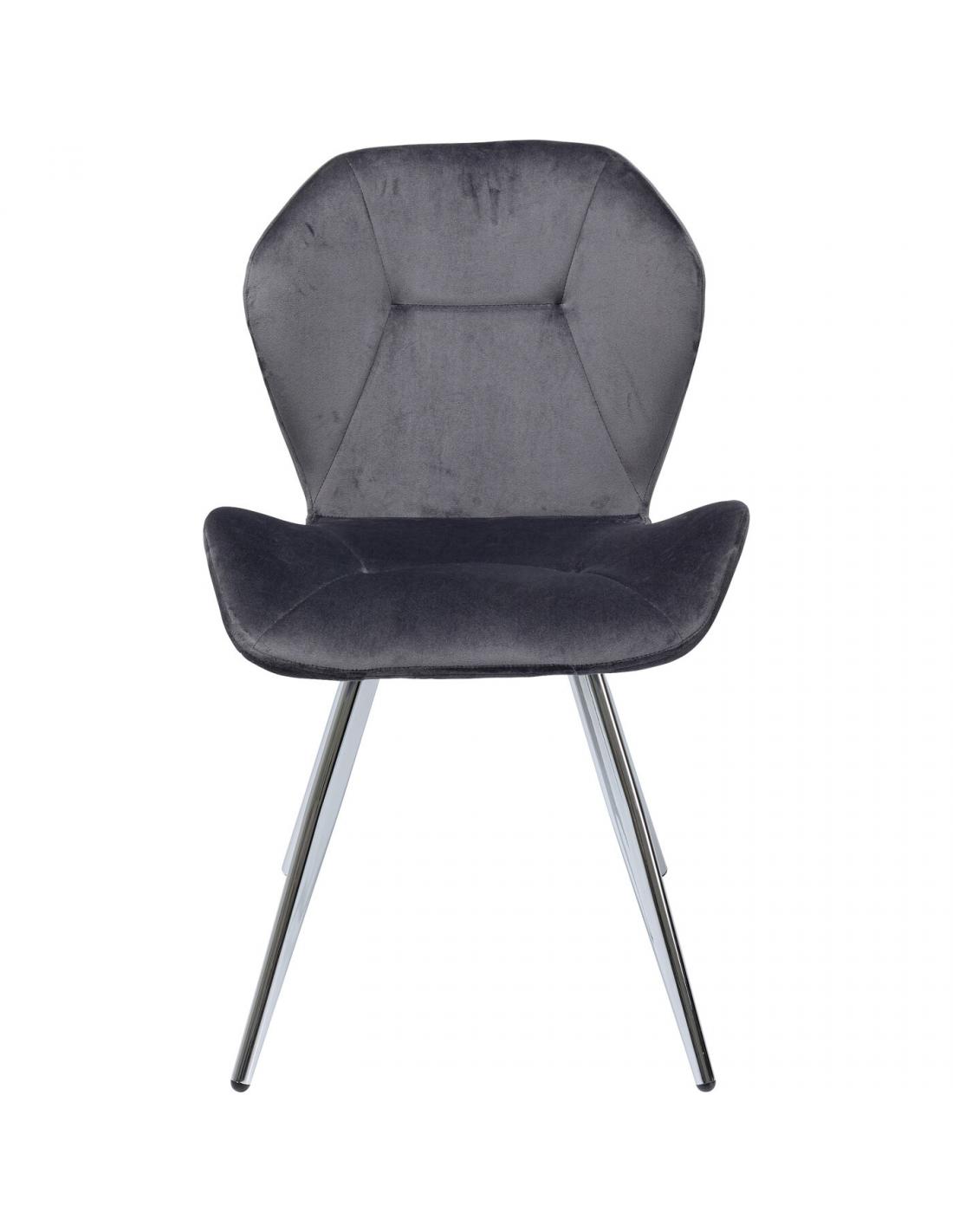 An elegant and designed dining chair with a diamond-shaped backrest upholstered in gray velvet with steel legs in silver finish. A very special piece that cannot be missing in your dining room.