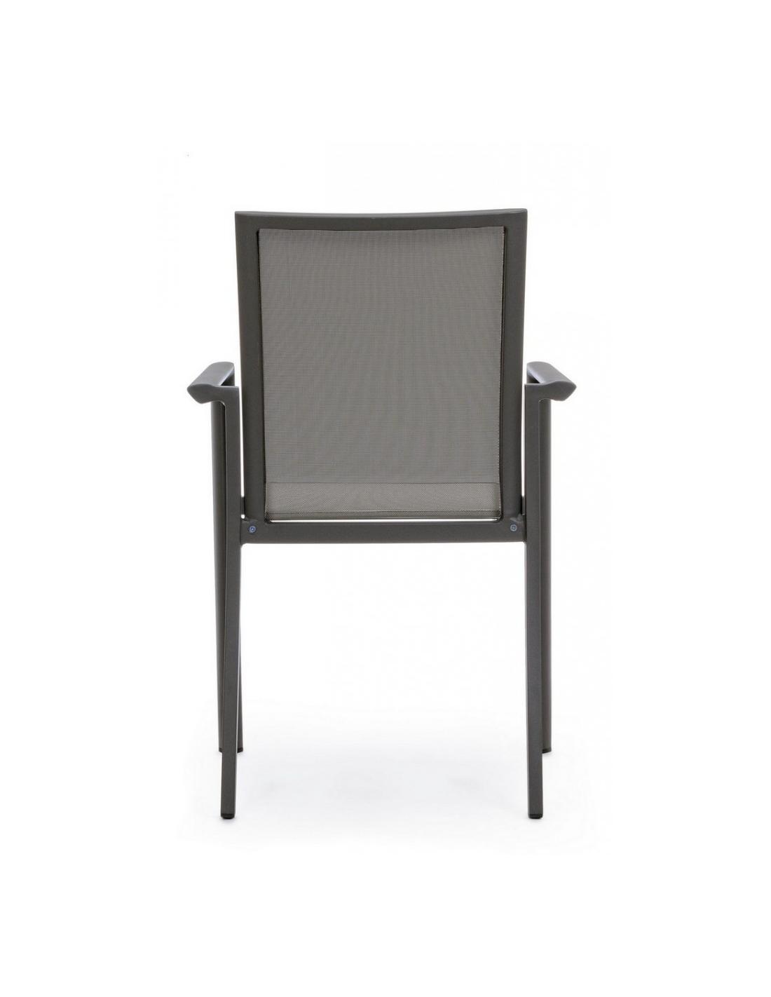Aluminum structure with powder coating (polyester). Textilene seat and backrest 1x1. Stackable.