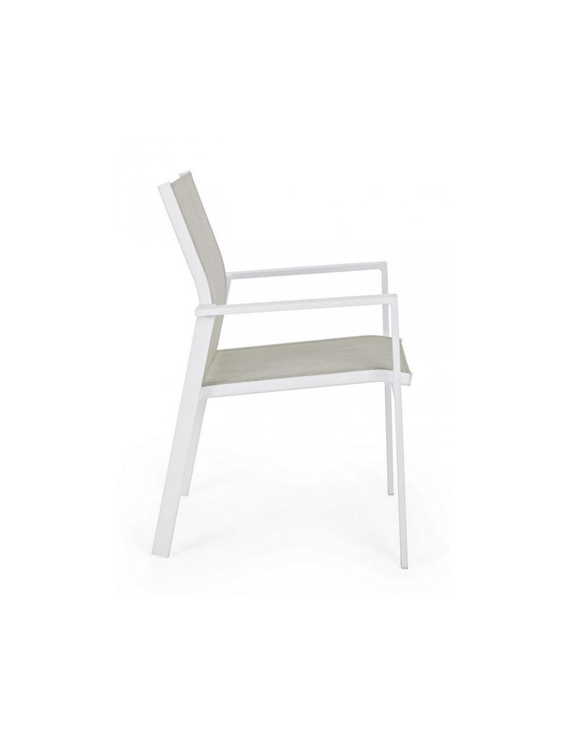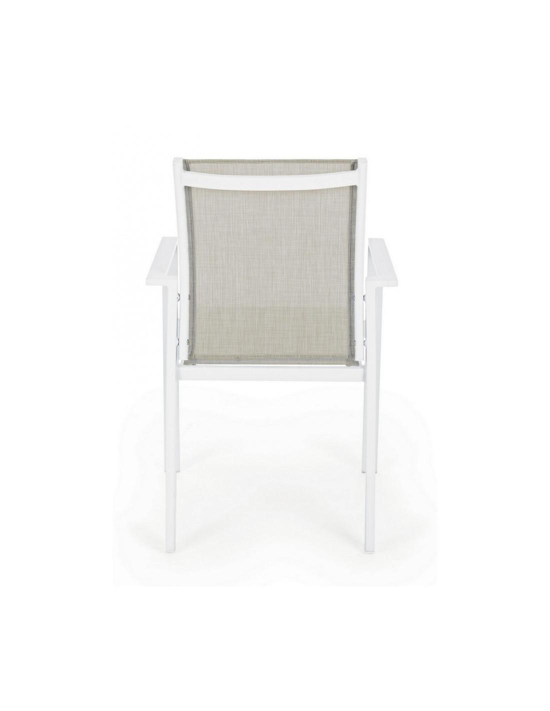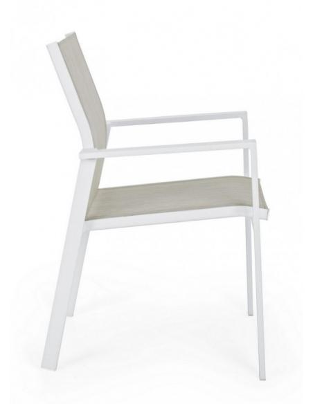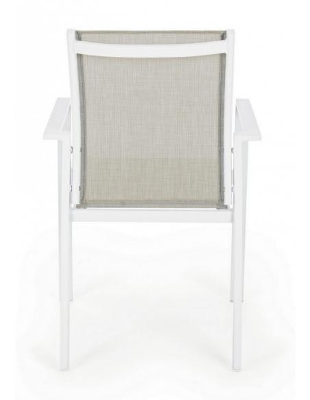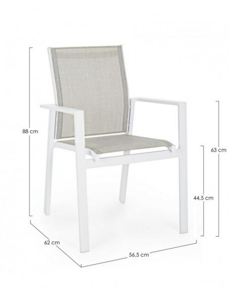 Aluminum structure with powder coating (polyester). Textilene seat and back covering 2x1. Stackable. Packaging without cardboard box.