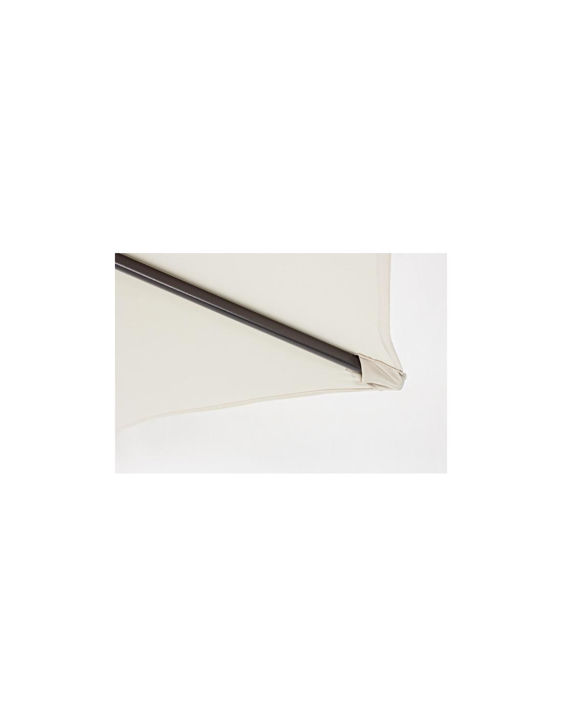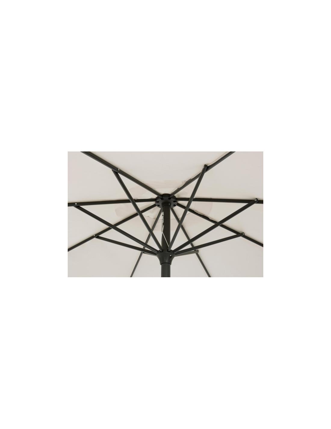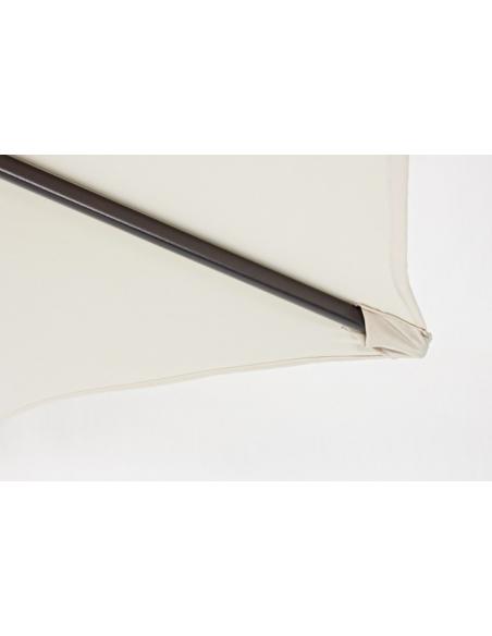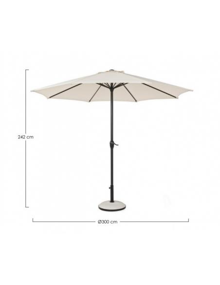 Structure with powder coating (polyester). Aluminum mast ø46/48mm. 8 steel rods treated for outdoor use by phosphating 12x18mm. Polyester canvas 180g/m2 with windproof chimney. Base not included.