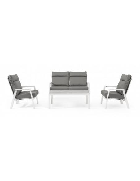 Powder-coated aluminium structure (polyester). Ceramic lid (thickness 10mm). Stainless steel screws. Legs to assemble.