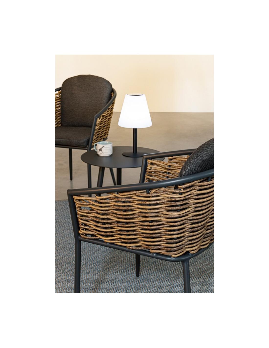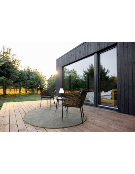 Aluminum structure with powder coating (polyester). The legs require assembly. Stainless steel screws.