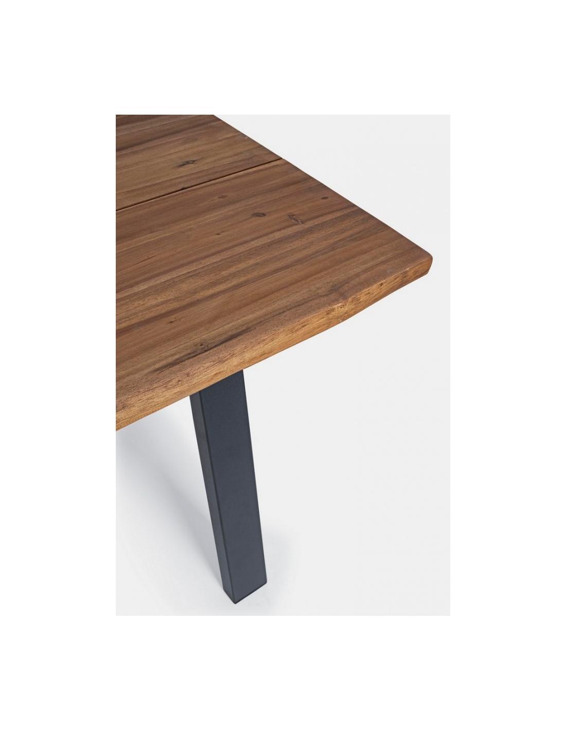 100% FSC acacia wood. Oil finish. Hot-dip galvanized steel legs with powder coating (polyester). Side slats on original sections of the trunk. The shapes and measurements are indicative only, each table will be different from each other. The legs require assembly.