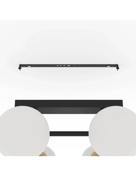 For the most modern and daring, EGLO has designed the 6-light Paz ceiling lamp, with matte finish in opal glass finishes and cross-shaped support in black with last gold finishes. The eclectic style is very fashionable and without a doubt the Paz lamp is proof of this. Requires 6 E14 bulbs, not included.