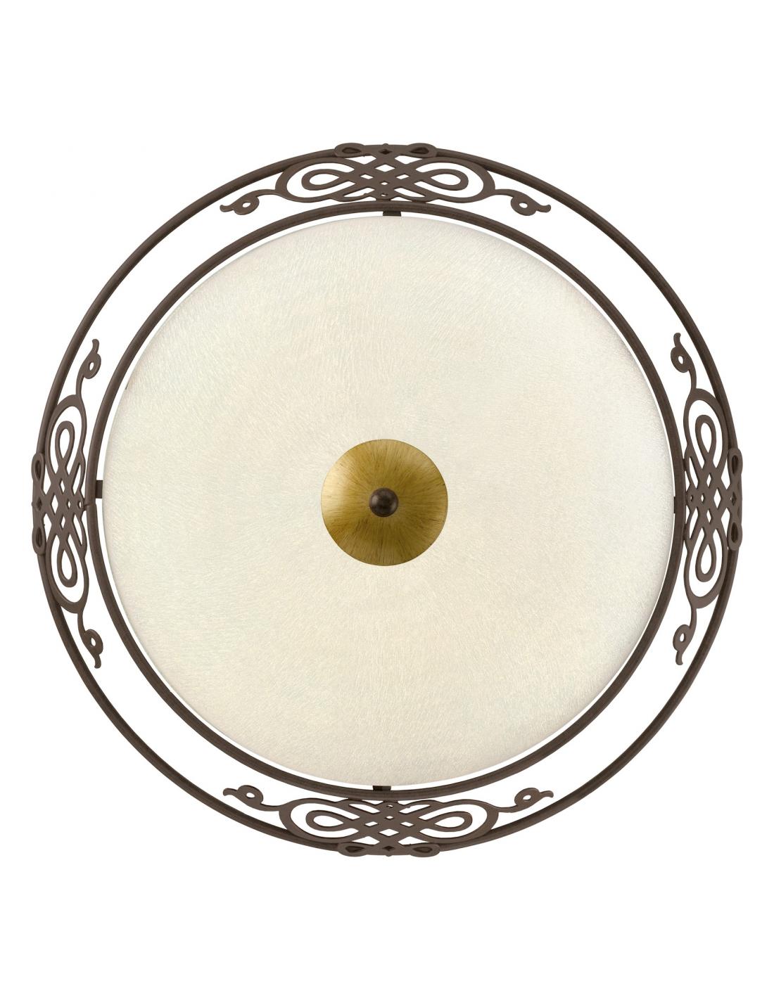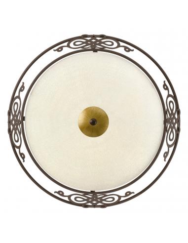 MESTRE ceiling light, made of antique brown finished steel and whitewashed beige glass with gold support in its center. Perfect for not taking up space and bringing light to your room. Requires 2 E27 bulbs, NOT INCLUDED.