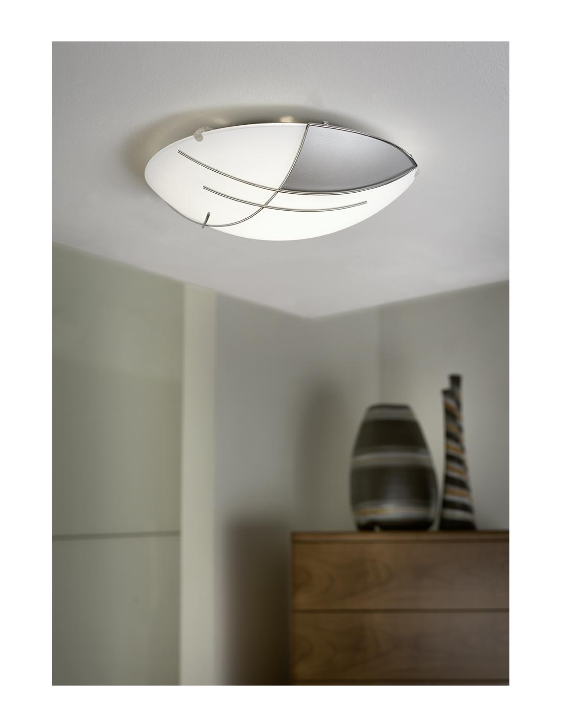 60W 220-240V,50/60Hz. It is characterized by the use of Steel materials as the main part and Satin glass for the screen. Combine colors such as White in the lamp and white, silver for the lampshade. Requires 1