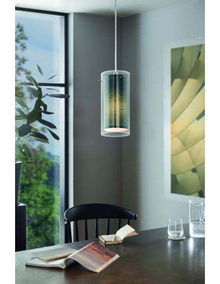 PINTO TEXTILE lamp. Spectacular for Living room lamp, made by EGLO, in matte nickel-colored steel and Glass, light color textile, gray. Requires E27 bulbs, NOT INCLUDED.