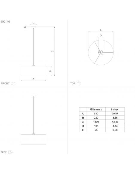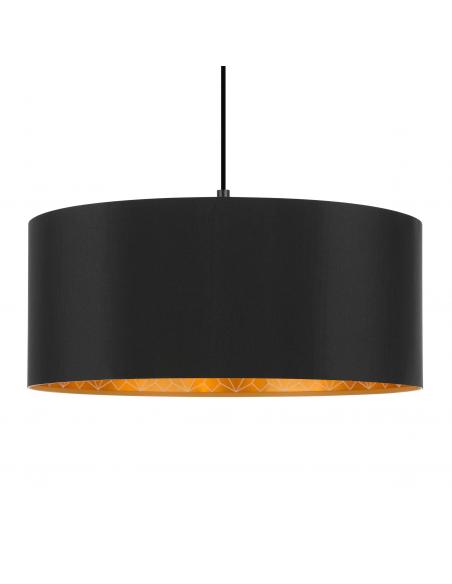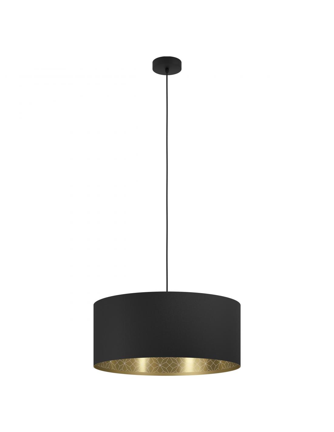 Textile pendant lamp in black with golden interior with engravings, very beautiful and elegant. Its finish and size make it perfect for a living room or dining room, and you can also adjust the height of its cable to your liking. It uses an e27 socket bulb, not included.