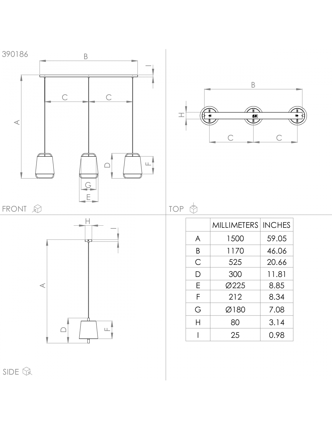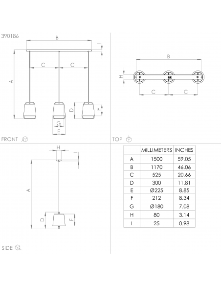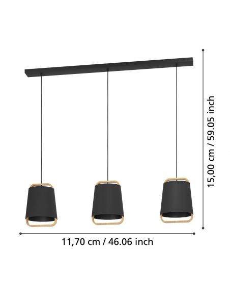 Black textile 3-light pendant lamp - EGLO Camaloza
