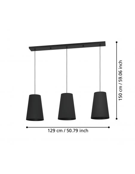 3-light hanging lamp black textile - EGLO Petrosa