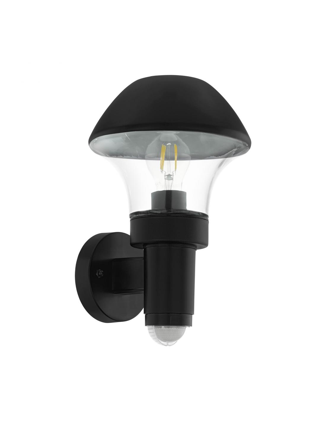 The VERLUCCA Lamp is an interesting outdoor wall light with motion sensor, made by EGLO, in black galvanized steel and clear black glass. Requires E27 bulbs, NOT INCLUDED.