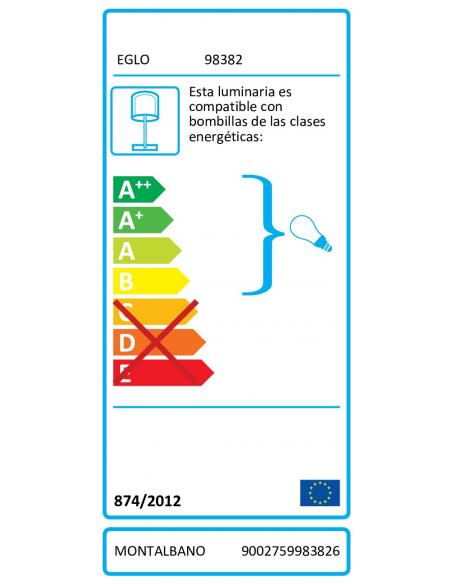 Reference EGLO 98382 is a fabric lamp from the MONTALBANO Collection with the following technical characteristics 1X60W 220-240V,50/60Hz. It is characterized by the use of Ceramic materials as the main part and Textile for the screen. Combine colors such as White in the lamp and white for the shade. It is adjustable in height. Requires 2 E27 socket bulbs (not included). In the recommended bulbs section we show you a selection with the best bulbs so that this lamp looks excellent. The manufacturer of this collection is EGLO, prestigious marca that stands out for the quality of its designs and for being a world leader in lighting.