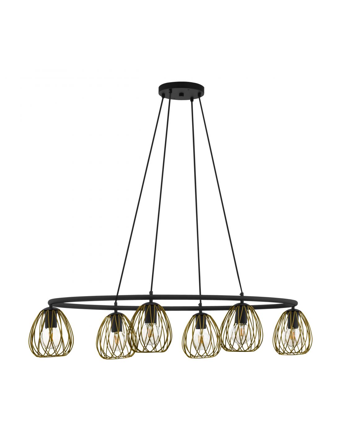 The JAZMINIA 1 Lamp is an elegant pendant lamp, made by EGLO, in black steel, brass. Requires E27 bulbs, NOT INCLUDED.