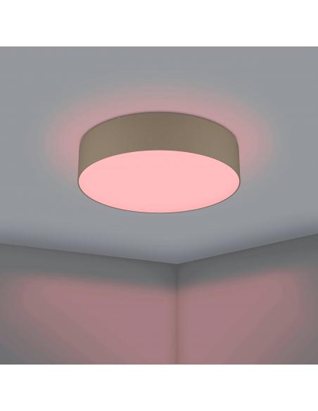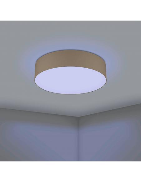 Smart LED ceiling light with white screen and decorative taupe textile linen coating. Thanks to its 3500 lumens of power and its multiple smart functions, you can illuminate any room in your home and control it remotely via app or by remote control (not included) and control its light temperature, choose different light colors and endless possibilities such as lighting programming, etc. Switch to the smart home!