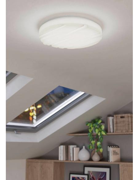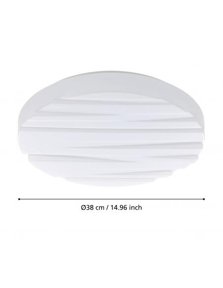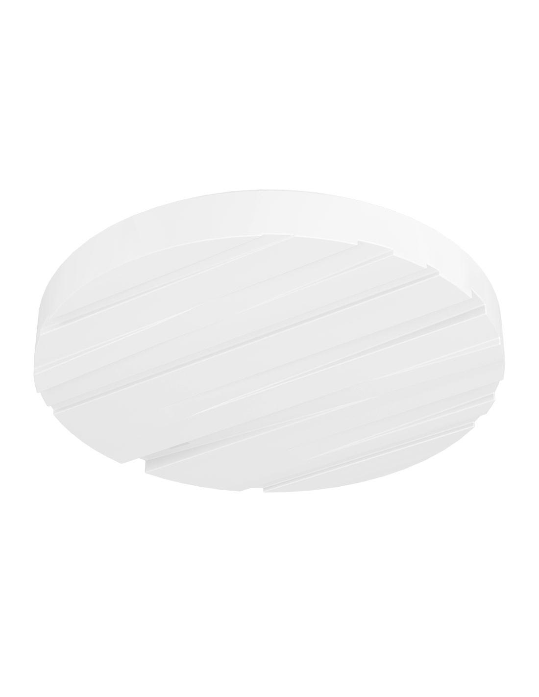 Round LED ceiling light with details on its white acrylic screen and white steel base. Perfect for illuminating a living room, dining room, bedroom and even a kitchen. Forget about the bulbs and get a warm white light ceiling light like this one, you won't regret it!