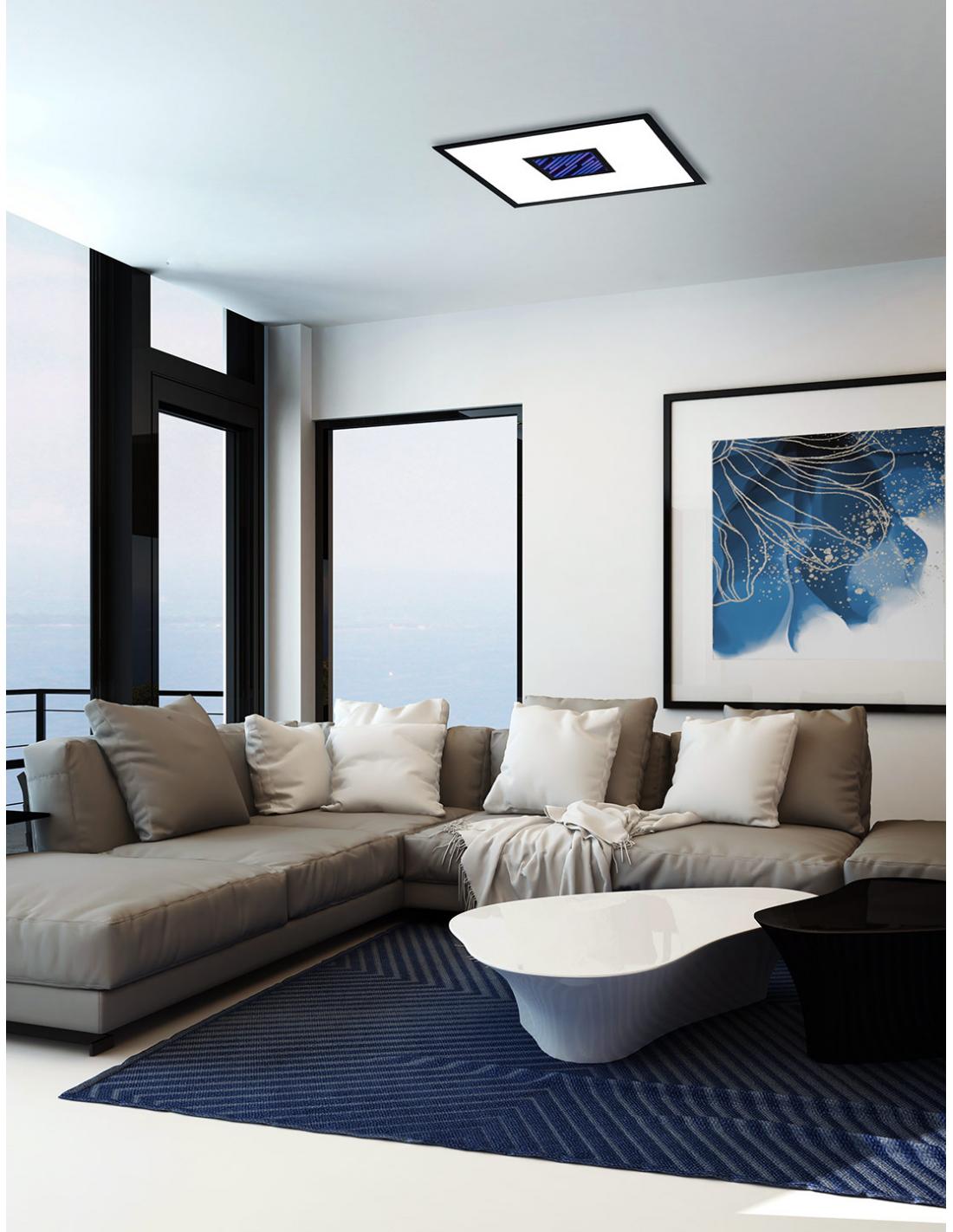Square led ceiling light with black line details on the outside and in its center, which surround the led that emits a light of 2800 lumens with a variable light temperature between 3000k warm neutral and 6000k cold, which you can choose according to your needs at any given time, Controlling it remotely with its included remote control. Additionally, this LED ceiling light can be dimmed in intensity, to create pleasant environments or work environments where a lot of light is needed. The perfect ceiling light for you!