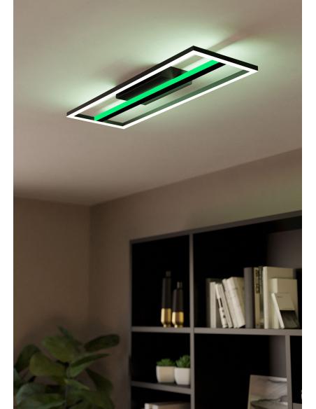 Minimalist integrated led ceiling light in black made of steel and aluminum, with many functions to offer in addition to its modern decorative design. You can control it remotely via app (free) or remote (not included) and choose the temperature and color of its light, program various functions and much more. Say yes to the smart home!