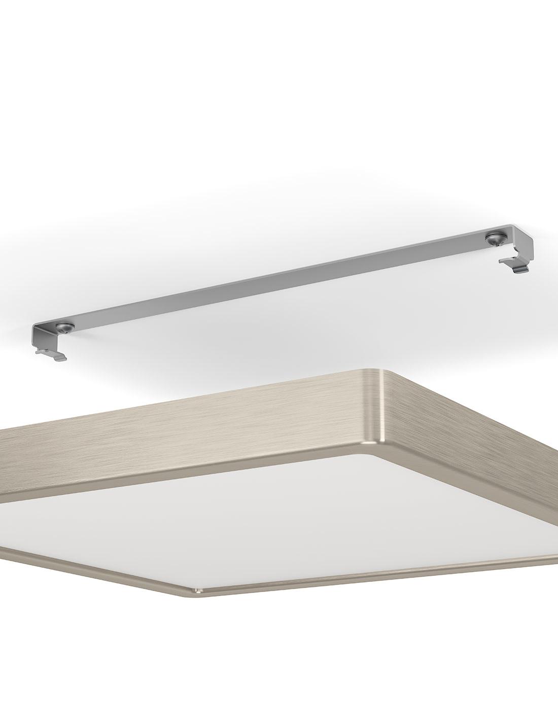LED ceiling light belonging to the famous Fueva family. Made of nickel-colored steel with acrylic screen, with integrated led with WARM NEUTRAL light. Adjustable in light intensity and a power of 20.5W and 2400 lumens.