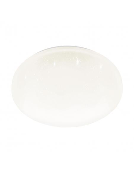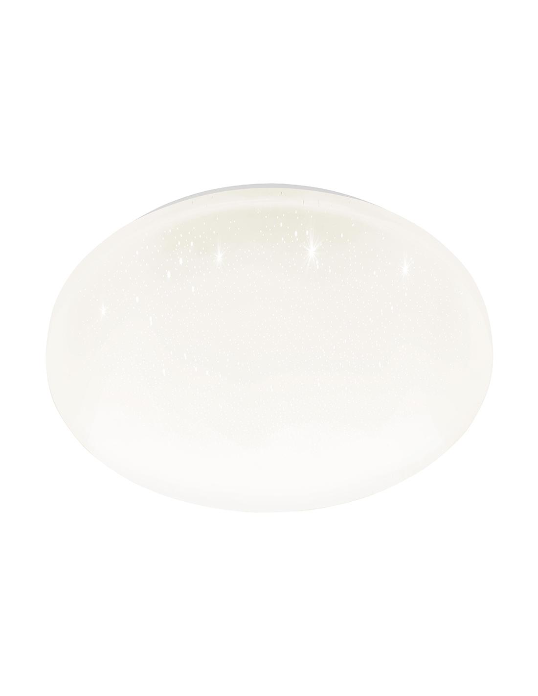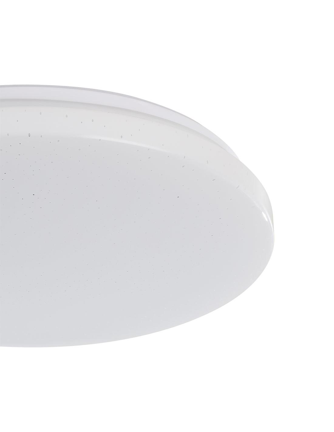 Round white LED ceiling light with starry effect, white steel base and acrylic screen. It emits a warm white light with 1850 lumens and 18W of power. Ideal for small rooms.