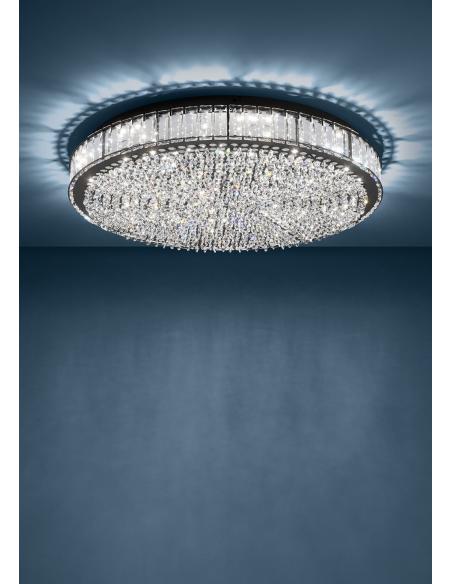 Spectacular LED ceiling light with hundreds of suspended crystals embedded around its base in a drop shape and rectangular shape respectively, which will exert a magical effect on the light given off by its 8 built-in leds. This ceiling light is made with a black steel base, which gives a more distinguished and different look to the piece. In addition, it emits a neutral light of 4000k great for any environment, especially living room, dining room or hallway, and emits thanks to its luminaires 3120 lumens and 4000 lumens, as its 4 LEDs are divided into two groups of 4, with 5.6W each LED of the first group and 7.5W each LED of the second group. In addition, this led ceiling light is adjustable in light intensity. Spectacular, powerful and elegant.