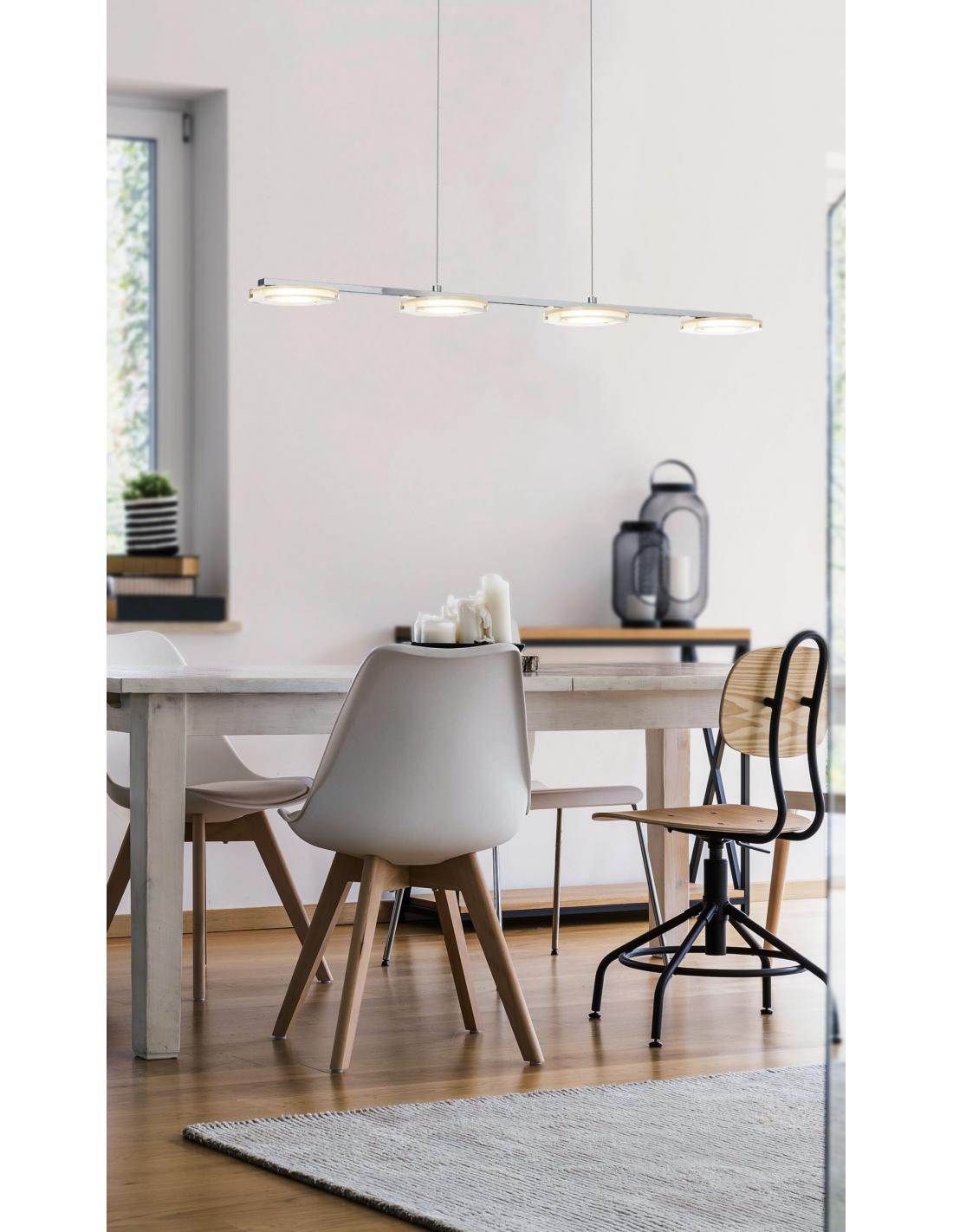 Reference EGLO 94245 is a pendant led lamp from the CARTAMA Collection with the following technical characteristics 4X4.5W 220-240V,50/60Hz 3000K. It is characterized by the use of Steel materials as the main part and Acrylic for the screen. It combines colors such as Metallic in the lamp and clear, satin for the shade. It has an INTEGRATED LED. The manufacturer of this collection is EGLO, prestigious marca that stands out for the quality of its designs and for being a world leader in lighting.