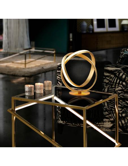Table lamp made of steel and aluminum, GOLD LEAF finish. Opal acrylic diffuser. LED lighting 17 W. 900 lm. 3,000 K.