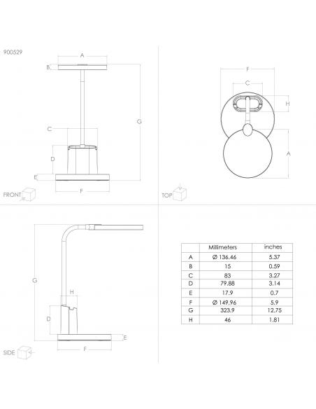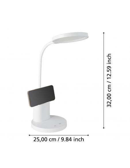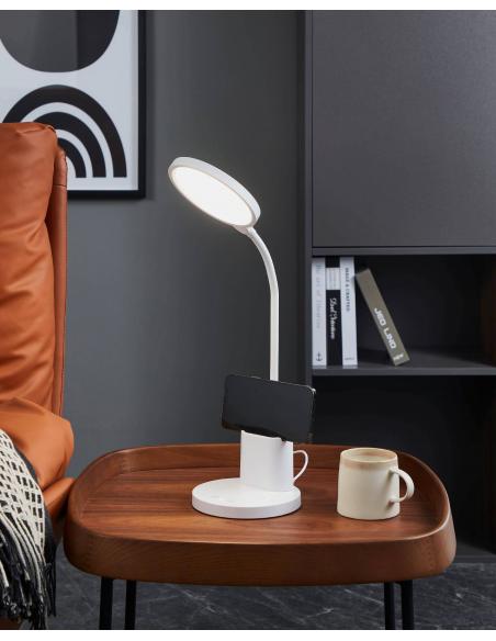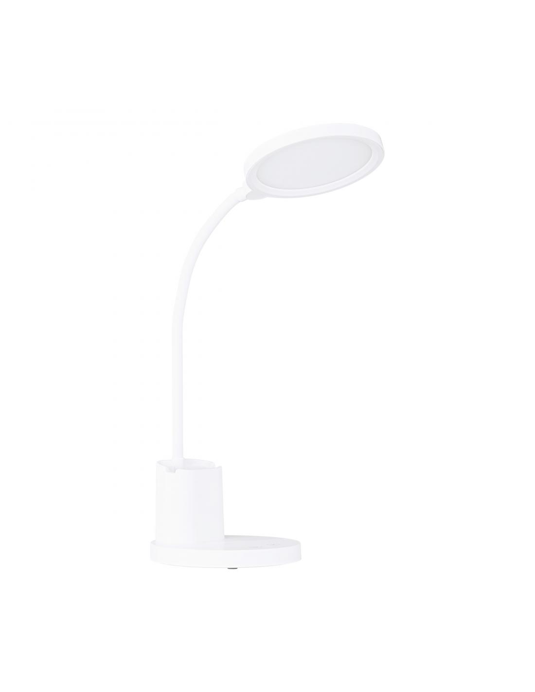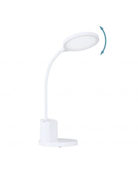 White LED flexo with flexibly adjustable neck and head. The desk lamp is equipped with a practical pen holder that can also be used as a holder for a mobile phone. Its integrated LED is dimmable between warm white, neutral white and cold white light. It can be turned on and off, as well as gradually dimmed by touching the "Touch me" area provided on the lamp base. The integrated rechargeable battery allows simple and practical lighting wherever you want and can be recharged with the supplied USB cable. With its timeless design, the desk lamp fits into modern environments and provides ideal lighting in the workplace, whether in the office or at the home study desk.