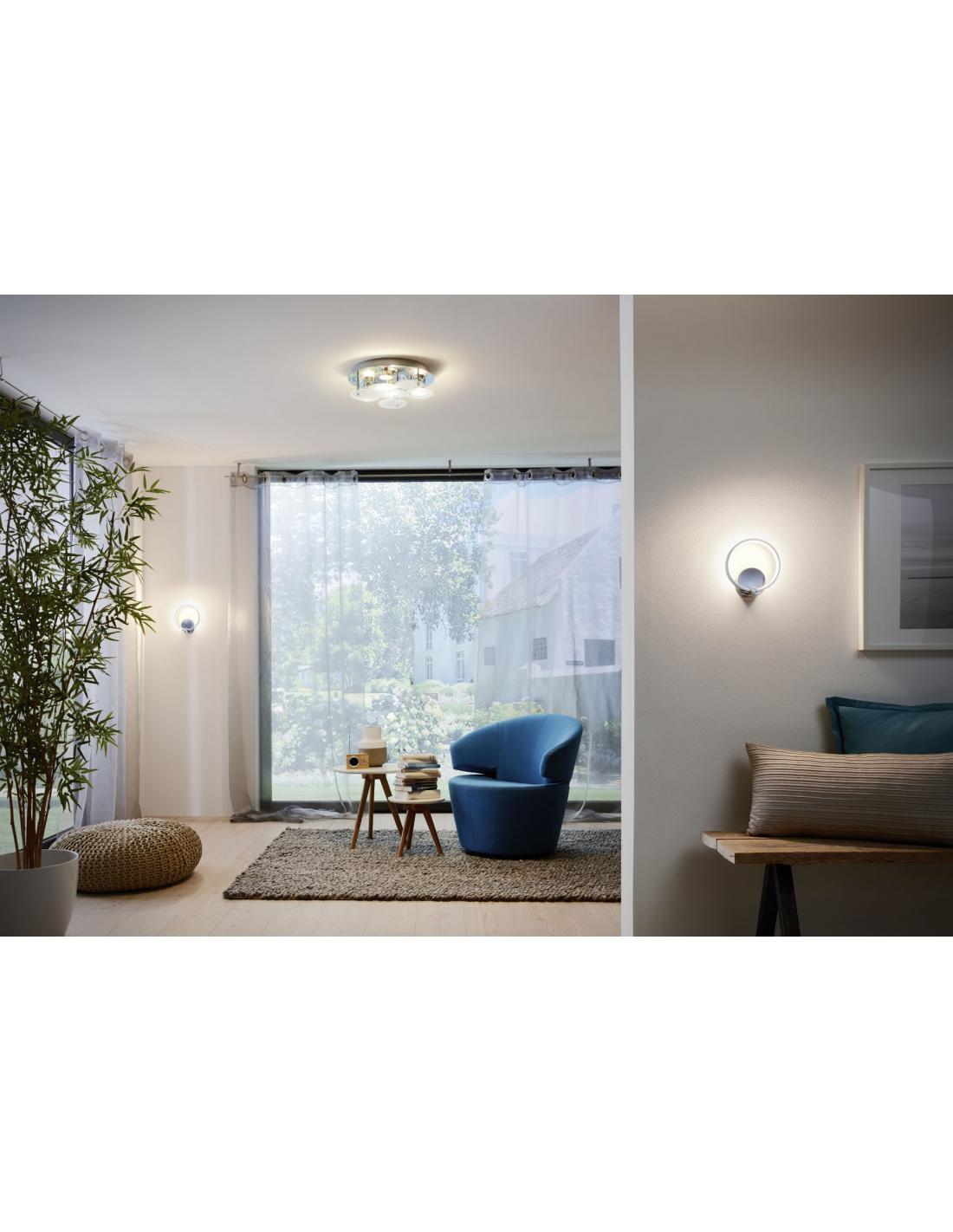 The LASANA Lamp is a unique LED Wall Light, made by EGLO, in Steel, chrome color aluminum and white Acrylic. INTEGRATED LED.